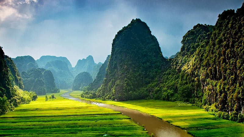 13h00: Tham gia chuyến đi thuyền 1,5 giờ tham quan Tam Cốc. Quý khách sẽ ngạc nhiên trước vẻ đẹp quyến rũ nơi đây với cánh đồng lúa, dòng sông trong xanh và hệ thống hang động tuyệt đẹp. Tất cả hòa quyện tạo nên kiệt tác mà người Việt gọi là “Vịnh Hạ Long trên cạn.”